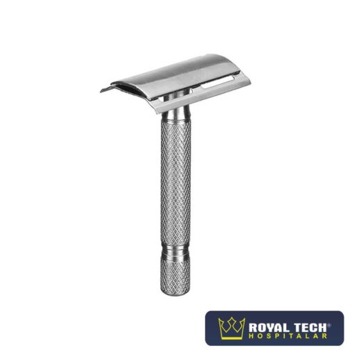 Este aparelho para tricotomia de metal possui encaixe firme para as lâminas, proporcionando melhor aderência e segurança. Seu cabo possui ranhuras que fixam melhor os dedos, evitando que o aparelho escorregue das mãos.