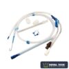 Cateter de duplo lúmen, de curta permanência, para até 30 dias de implantação em veia subclávia ou jugular, fabricado em poliuretano macio e biocompatível, radiopaco, graduado a cada centímetro, diâmetro externo com 04, 05, 07, 08, 8.5, 11.5 e 12 Fr. e comprimento com 05, 06, 08, 10, 13, 15, 16, 20 e 30 cm, conectores luer lock e pinças em cada via do cateter. Vem acompanhado de 1 dilatador de veia, 1 guia metálico em aço inoxidável com núcleo em nitinol com ponta macia em jota, 1 agulha introdutora e 1 aleta de sutura móvel com trava.