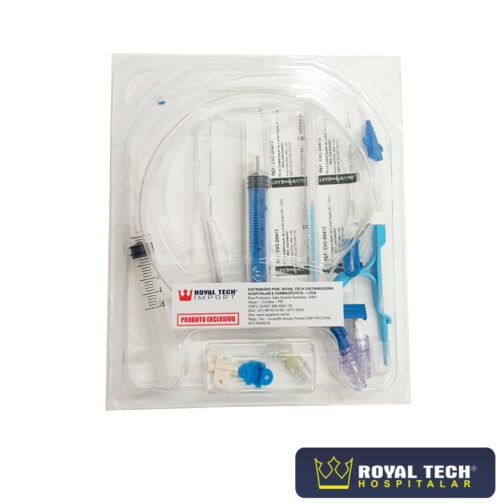 O cateter venoso central duplo lúmen– é constituído por um kit contendo: