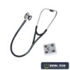 O auscultador é confeccionado em zinco e sua membrana é feita de PVC. – O anel do auscultador é confeccionado em aço inox. As olivas são confeccionadas em plástico PVC. -As hastes são confeccionadas em cobre e sua amola é feita em aço inox. O tubo Y é confeccionado em tubo de PVC macio.