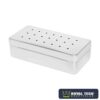 Fabricado em aço inoxidável 304, possui alta resistência à corrosão, a ação mecânica, térmica e química, tolerando a esterilização em altas e baixas temperaturas. Seu formato com cantos arredondados facilita a limpeza e a higienização. Disponível em diversas dimensões.
