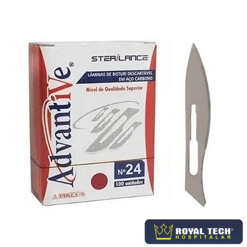 Lâmina de aço carbono utilizada em procedimentos médicos para realizar a incisão.