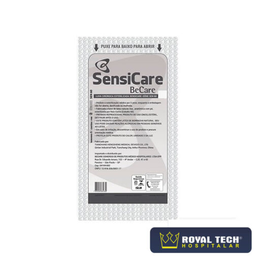 As Luvas Cirúrgicas Estéreis com pó SENSICARE, são desenvolvidas em látex natural, possuem comprimento de 290 mm e uma espessura média de 0.21 mm, lubrificadas com pó bioabsorvível, que facilita a introdução das mãos, seu punho possui bainha enrolada que permite melhor calçamento e retirada da luva.