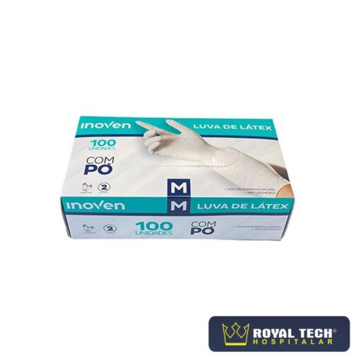 Luva de látex Inoven caixa com 100 unidades – Ambidestra – Uso único – Não uso médico – Não reprocessar – Látex de borracha natural. Para uso em higiene, cuidados pessoais, aplicação de tinturas e cremes capilares, manuseio e trato de animais.