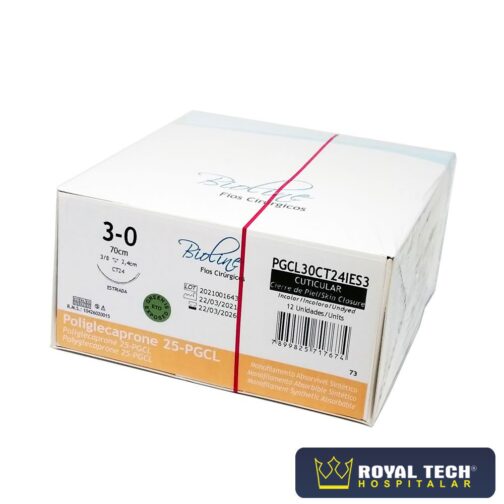 Os fios cirúrgicos de PGCL são de origem sintética, fabricadas com fio absorvível monofilamentar, de poliglicolídeo-poli 75% e e-caprolactona 25%, possui alta resistência e fácil manuseio. São contraindicadas em procedimentos que haja contato de longa duração com soluções salinas; que exijam extensa tensão para a aproximação dos tecidos e em cirurgias cardiovasculares, neurológicas, oftalmológicas e microcirurgias.