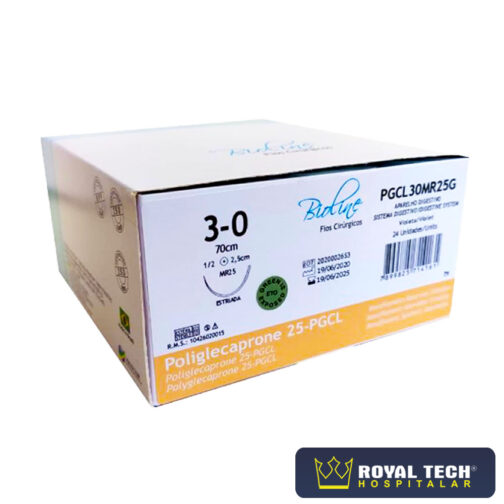Os fios cirúrgicos de PGCL são de origem sintética, fabricadas com fio absorvível monofilamentar, de poliglicolídeo-poli 75% e e-caprolactona 25%, possui alta resistência e fácil manuseio. São contraindicadas em procedimentos que haja contato de longa duração com soluções salinas; que exijam extensa tensão para a aproximação dos tecidos e em cirurgias cardiovasculares, neurológicas, oftalmológicas e microcirurgias.