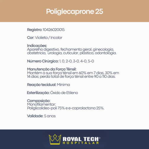 Origem Sintética: Monofilamentar, Poliglicolídeo-poli 75% e e-caprolactona 25%