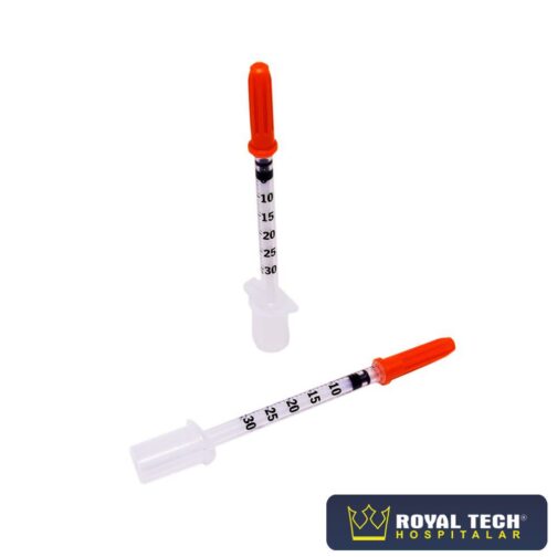 Seringa para aplicação de insulina com capacidade máxima para 30 UI com agulha Ultra-Fine II de 8mm de comprimento.