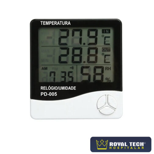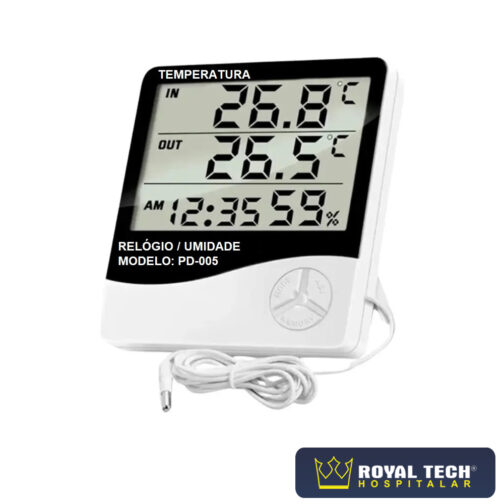 Termo-higrômetro digital para monitoramento preciso de temperatura e umidade em ambientes internos. Ideal para residências, escritórios, laboratórios, clínicas e locais que exigem controle ambiental.